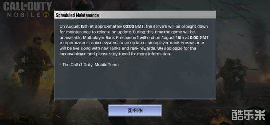 根据最新公告,《使命召唤手游》测试服于北京时间8月15日上午11点开始停机维护,详情请见具体新闻。