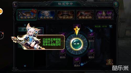 如果有了足够的秘宝碎片,就可以将众多秘宝碎片放到相应的位置,从而合成秘宝。