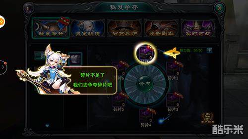如果碎片不足了,则可以去争夺碎片,争夺碎片需要花费一定的精力值,默认的精力值是50点,每次将会使用5点,如果精力值不够用的话,可以通过元宝来购买精力值。