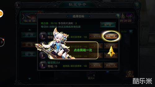 你可以自由选择你要挑战的目标,可以是秘宝假人,也可以是玩家。值得注意的是,每天凌晨12点到次日早上10点是不能挑战其他玩家的。