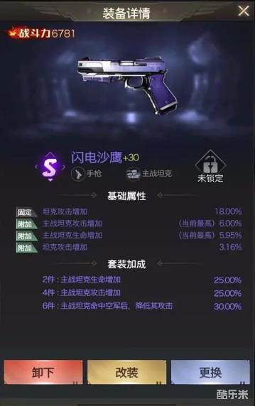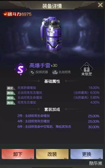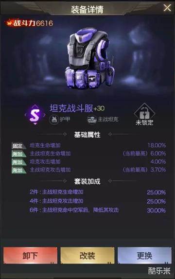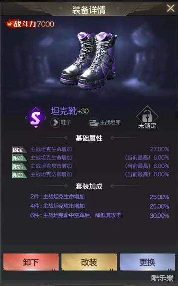 紫色套装三条属性:主战攻击,坦克攻击,主战生命