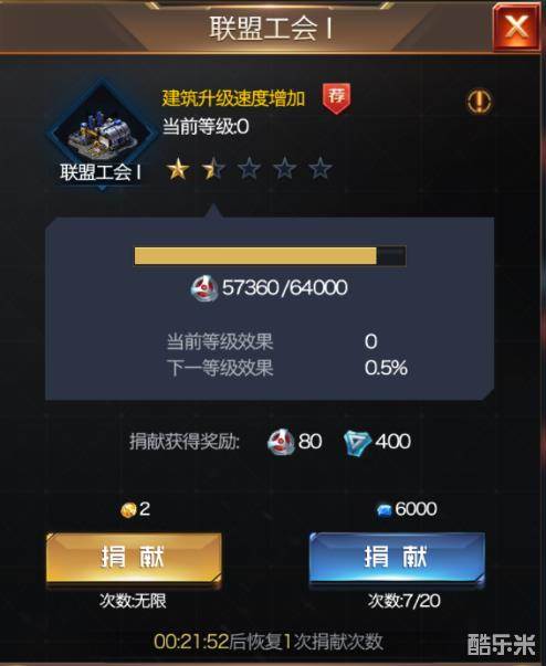 科技捐献会消耗一定的资源,入盟每半个小时可以获得一次捐献次数,最多可以累积20次,捐献次数用光后,如果还想继续为联盟做贡献,就只能选择金币捐献或者用金币刷新捐献次数。