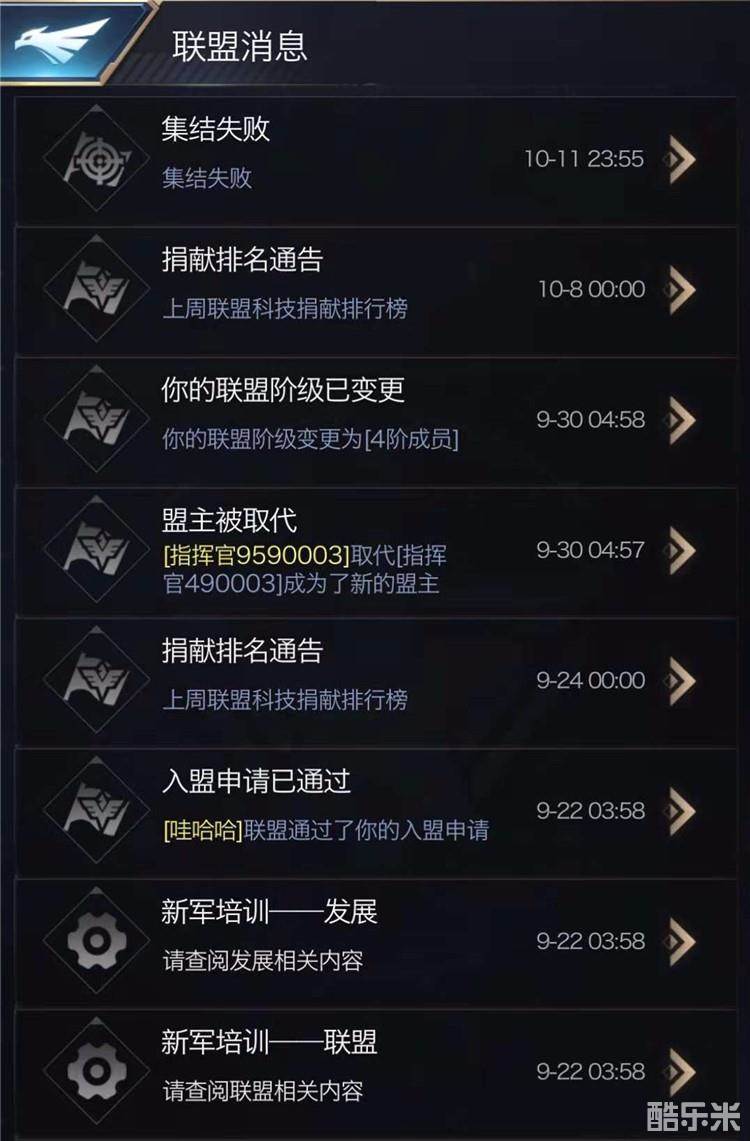 【联盟消息】:联盟相关的活动、联盟官员的职位变动以及联盟内排名信息,都是从这里查阅,通过这些邮件我们可以了解联盟的最新动态。