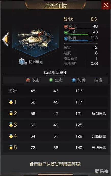 防御坦克荣誉勋章二星解锁兵种技能