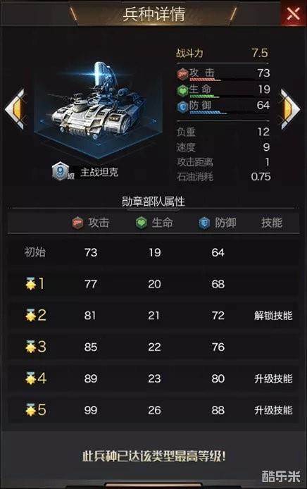 主战坦克荣誉勋章二星解锁兵种技能