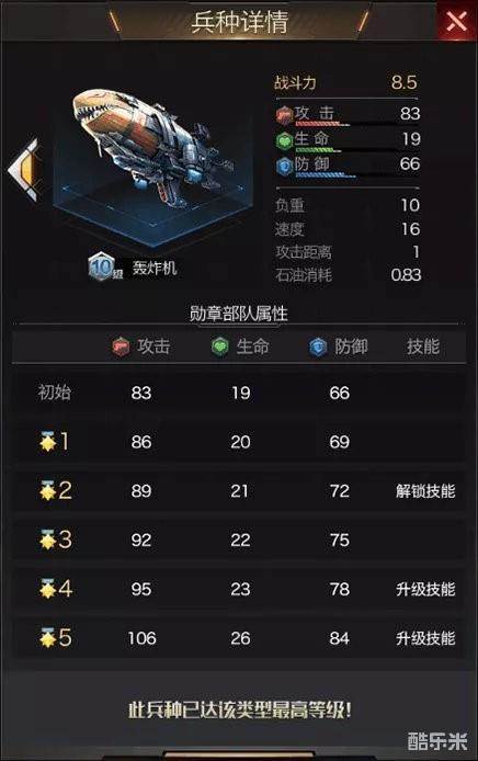 轰炸机荣誉勋章二星解锁兵种技能