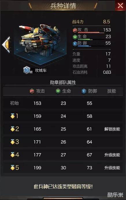 攻城车荣誉勋章二星解锁兵种技能