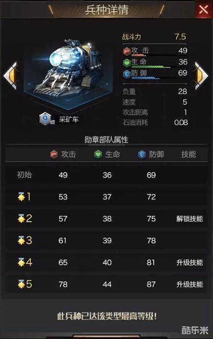 采矿车荣誉勋章二星解锁兵种技能