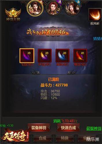 集齐四阶神羽就能激活疾风斩技能,疾风斩现在最高等级是2级,而且激活2级疾风斩根本不需要神羽达到8阶,只需要5阶就可以了。翅膀全部升级到10阶满级了,多余的羽毛怎么办?在神羽里面的仙炼就能解决,仙炼跟龙魂差不多,升级的时候需要羽毛,到达10级之后,只不过后需要神羽仙髓,然后继续用羽毛升级,以此类推,这时候有个名词,几锻几星。当然,这东西只能在神秘商店里面购买,其他地方买不了,可遇不可求。