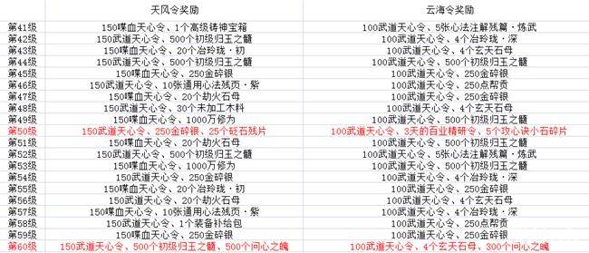 第60级的天风令可以领取500问心之魄,云海令300问心之魄。