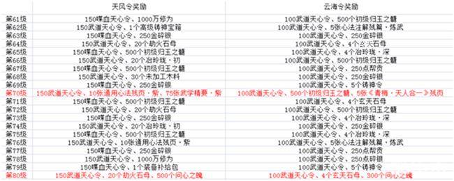 第80级的天风令有500问心之魄,云海令300问心之魄。