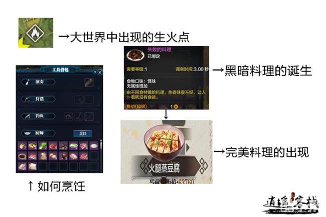 虽然第一次下厨尝试以失败告终,但是我不会放弃的!谁叫我是百折不挠的东越香!看看背包里的食材,虽然有些头痛,但是还是决定再烹饪一次,作为一个无肉不欢的香香,这次试试猪肉与豆腐的搭配,再加点香料和调料,在我满怀期待中,终于出锅了一盘火腿蒸豆腐,吃光这盘菜,角色就可以获得持续30分钟的血量加成啦!