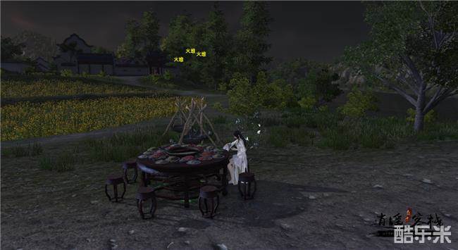 好啦,一切准备就绪,可以开始生火烹饪了,那么如何才能生火呢?我们使用身份技能列表中的“生火”,这样就可以在指定地点架起火堆,然后再点击背包中的江湖身份工具箱烹饪,就可以看到出现图中的烹制界面了。