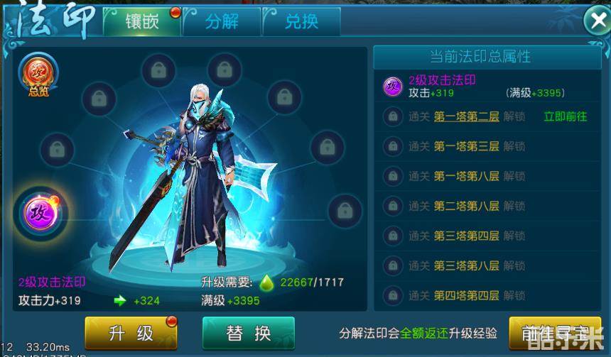 法印分解:多余的法印可用于分解,分解后获得法印经验。法印经验可以升级法印,获得更高的属性。