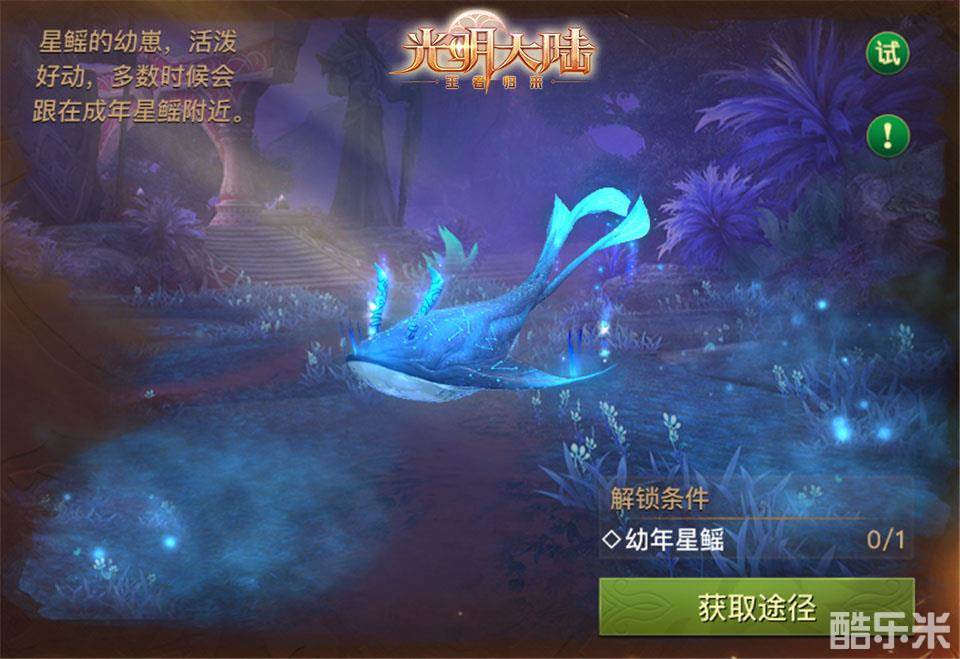 追随着虚空星鳐的步伐,幼年星鳐也降临玛瑟兰德大陆,它也拥有着唯美的外观和浮空的能力,消耗银币即可抽取,是你征战四方的绝佳坐骑!