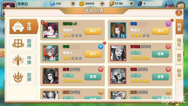 为了方便主公能够亲率英雄豪杰驰骋一方,我们还优化了主公的武将列表,现在的武将界面能够按照稀有度进行排序。足智多谋诸葛亮,志在千里曹操和勇武飞将吕布,哪个是主公的得力手下?新的武将界面让各位主公更加直观地看到自己的各个品阶武将,赶紧将自己最喜爱的武将放上前排吧!