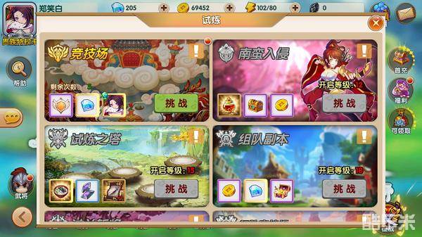 主公是否征讨了中原地图还不过瘾?觉得自己带着武将称霸了三江流域就没意思了?那就来试炼之地吧!在这里各位主公能对其他国度之主发出比试还有机会获得钻石奖励;带着心腹将领抵御南蛮入侵获得金银物资;还可以和其他主公组成联盟获得丰富奖励哦!