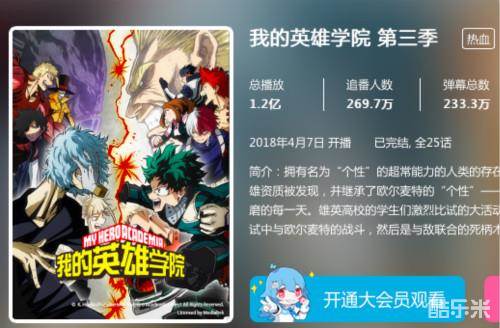 《我的英雄学院》是根据堀越耕平目前连载于《周刊少年Jump》上的超人气同名漫画所制作的电视动画。原作系列已累计发行超过2300万册。不仅日本,该作在中国也有着爆炸般的人气。国内知名视频弹幕网站bilibili《我的英雄学院》第三季在只对会员开放观看权限的前提下依然轻松突破1亿大关。