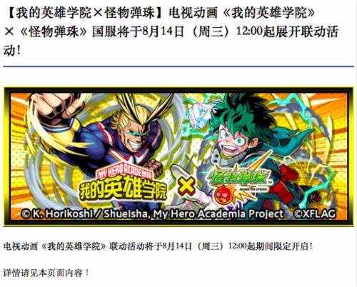 这次的联动内容制作还是蛮精良的,出场人物阵容强大。以主人公「绿谷出久」为首,「欧尔麦特」「爆豪胜己」「轰焦冻」「丽日御茶子」「饭田天哉」等角色将悉数登场。