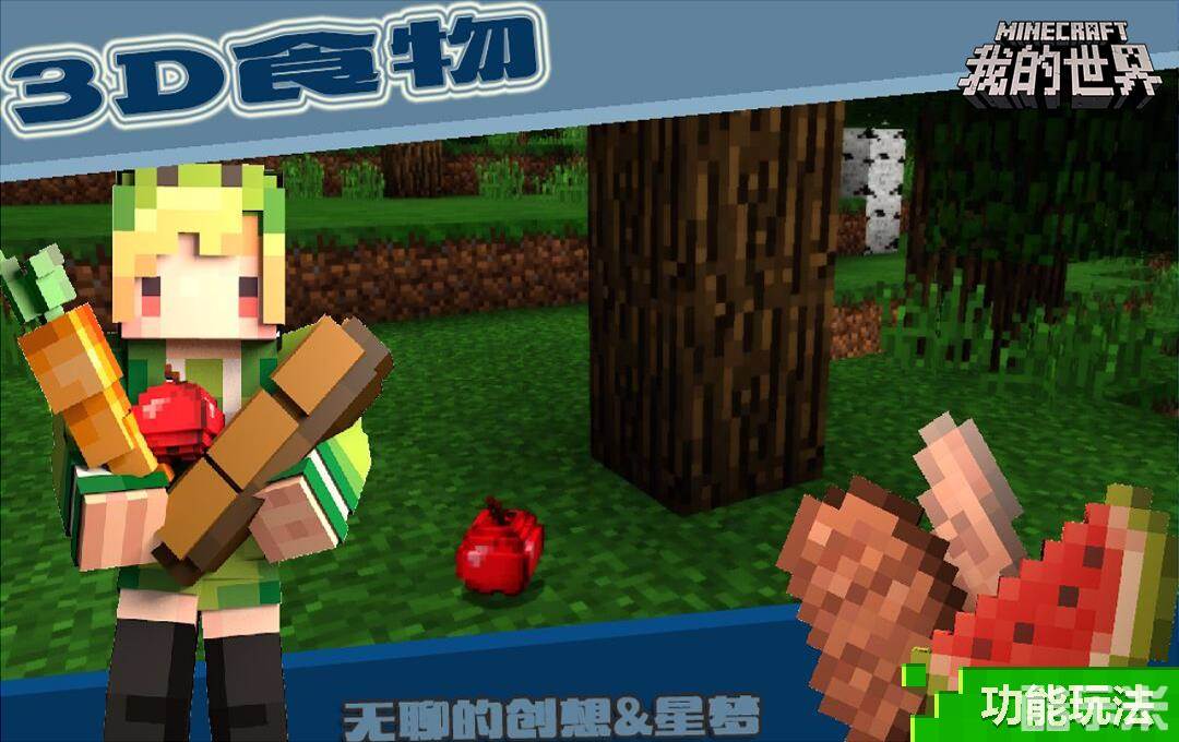 棱角分明的像素画风可是《我的世界》的标识,在《立体食物》中,连美味的食物也变得更加立体了!各种食物更会在野外自然生成,冒险的旅途再也不怕挨饿了~