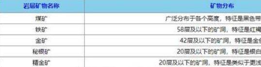 1、岩层矿:所谓“岩层矿”,即矿藏在地形方块中,特征是方块上有着不规则分布的突起物,除去煤矿之外均为金属矿,会散发着金属色泽的光芒。