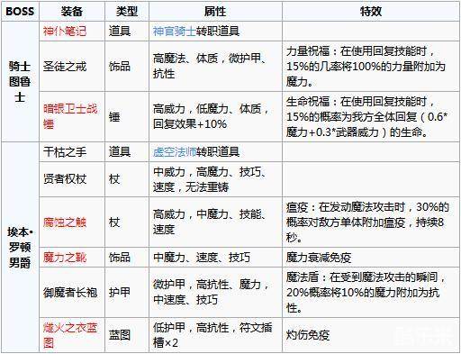 红色为优秀推荐装备,值得反复刷,可用至后期。