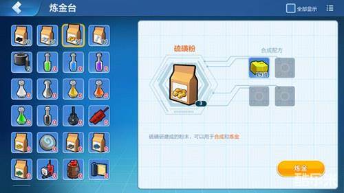 获得硫磺后需要在炼金台上加工制作成硫磺粉。