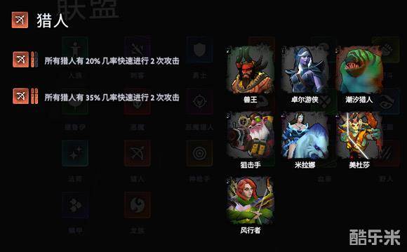 猎人的buff由所有友方猎人+35基础攻击力且攻击+35%命中,改为猎人有15几率进行3次快速攻击。