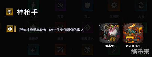 神枪手=矮人,buff由自身攻击距离增加2格,改为矮人单位专门攻击生命值最低的敌人。