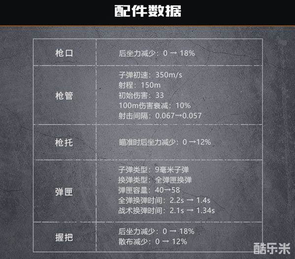 经济实用的近战武器,单发威力较小,射速快,弹匣容量大,后坐力较小,非常适合新手使用。同时大弹匣、高射速、操控性强使得该类枪械在长时间持续输出中拥有较大优势。