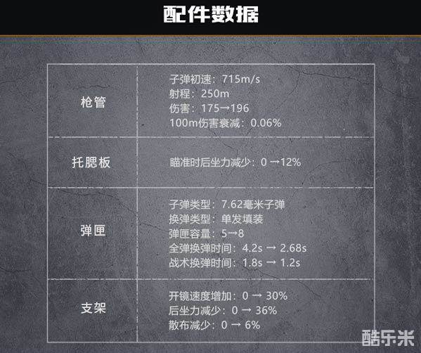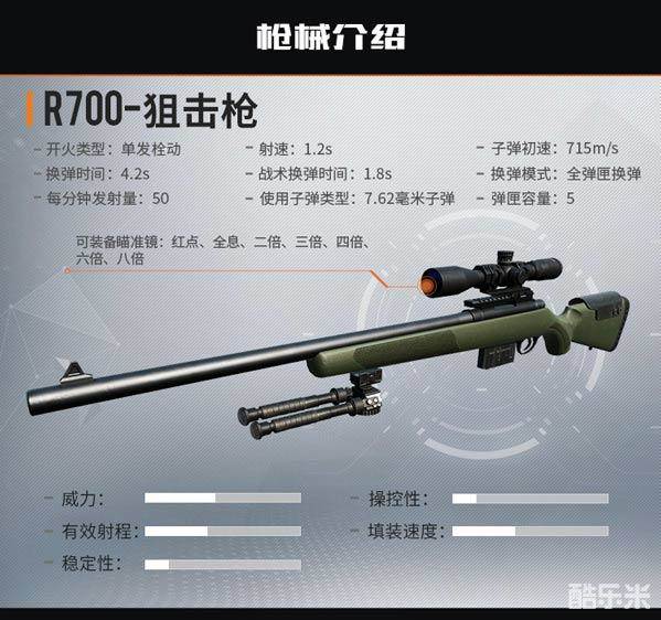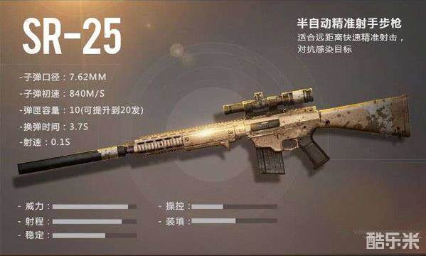 射击精度高,射程远,单发威力强的专用步枪。拥有最高的单发伤害和射程,缺点为弹匣容量较小,更换弹匣速度较慢,射速较慢,不太适合持续输出