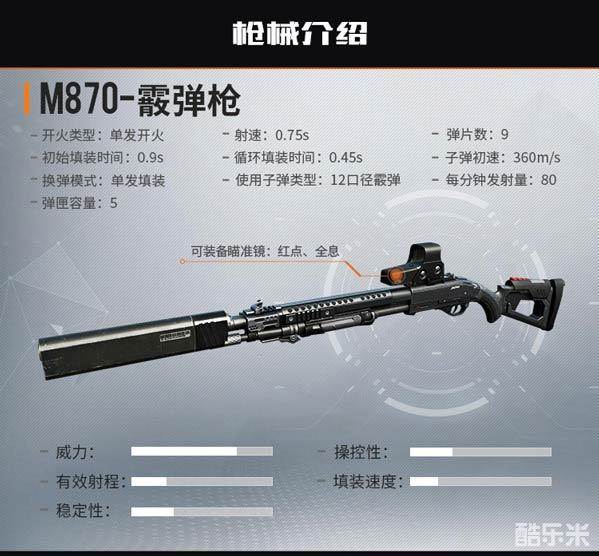 使用大口径霰弹,一次发射复数个弹片,近战情况下拥有最高的火力和命中范围,但中远距离作战乏力。