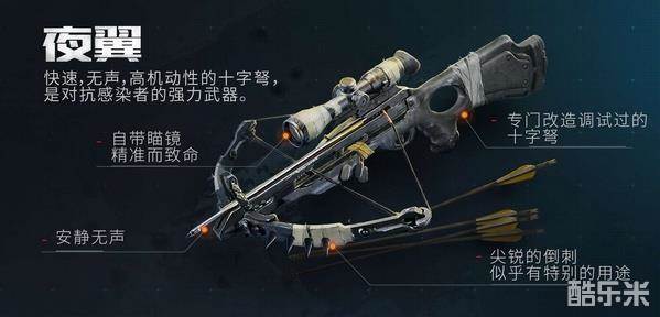 安静无声,穿透力极强;自带瞄镜,精准度极高,在潜行、探路、围猎过程中,都能箭无虚发,并且不会引来更大规模的感染者围攻。
