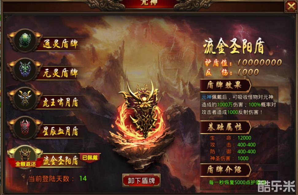 首先我们来说一下开服哪些必须买,8888盾牌没什么好说如果坚持玩这个买了非常划算打boss必须(特别提示:前3天买盾元宝15天后会返还,等于没话一分钱买了个盾牌)