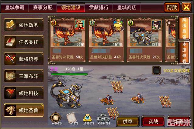 · 每周皇城争霸比赛期间,玩家参加圣兽对决如果取得胜利,还可以为本服三军队伍增加士气值。