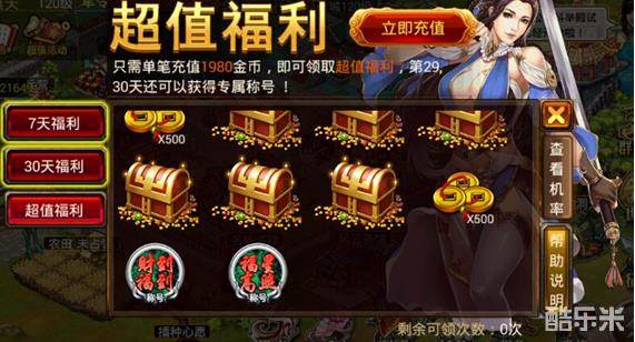 · 充值福利界面增加“超值福利”,单笔充值1980金币即可激活超值福利。