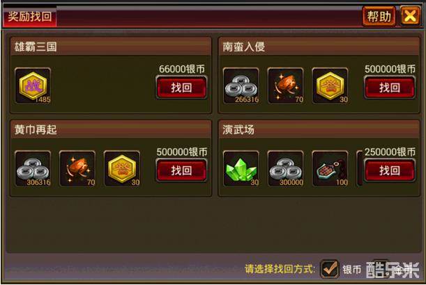 · 银币找回,可找回部分活动奖励