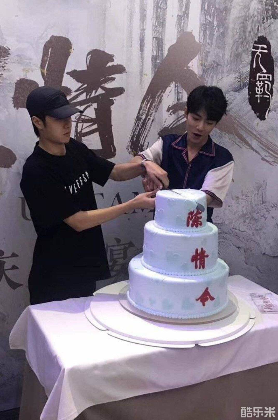 《陈情令》剧组举办庆功宴,肖战王一博一起手握手切蛋糕