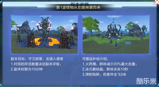 副本限时10分钟,等级与玩家的等级相同,需要防守前来进攻的敌人,保护村民: