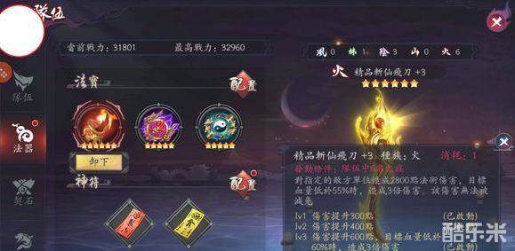 法宝的选择主要是斩仙飞刀(主攻手)和阴阳镜(盾上好上满)以及化血盘(防补血)。