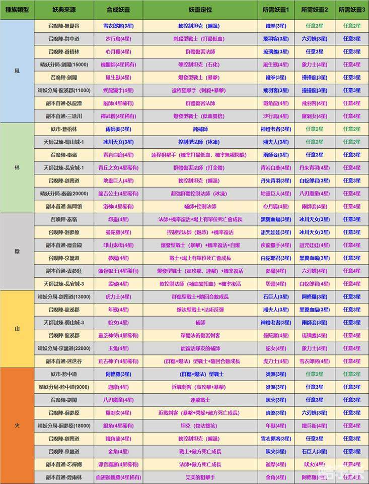 长安幻世绘妖灵可以通过妖典合成获得,那么具体的合成方式是什么样的呢?下面小编就为大家整理带来长安幻世绘妖灵妖典合成配方表:
