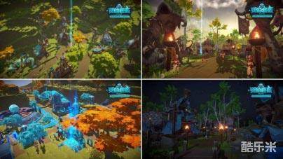 不同的部落拥有不同的元素特点,火之部落火把环绕,水之部落白雪皑皑,风之部落风车遍布,雷之部落电闪雷鸣。