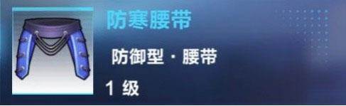 防御型防具:防寒腰带基础属性:攻击值+35:闪避值+31:耐寒值+1°特殊属性:冰抗性+1%