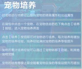 ④培养宠物可以提升宠物骑乘属性和出战属性