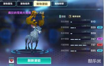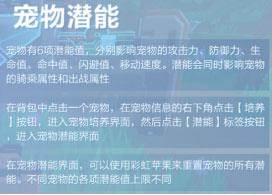 每只宠物驯服后天生自带的基础属性都不一样,玩家在素材不足或宠物为稀有宠物的情况下,可以将已拥有的宠物使用潜能功能,随机替换属性。