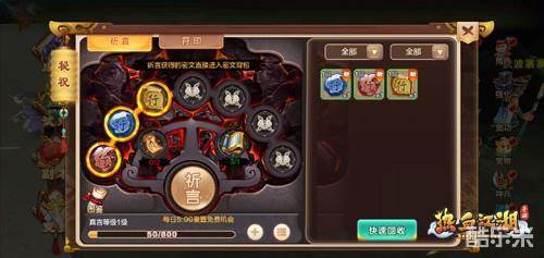 在江湖中行走,从小白到侠客是轻而易举,但是要从普通侠客进阶到大师级绝非易事。后期提升每一步都难如登天,为了让强者更强,91级以上玩家都可进入秘祝系统收集密文。密文收集只是提升的第一布,只有将密文放入符印中,才能激活相应的属性和效果。免费祈言机会,每日一次,免费次数消耗后,也可使用召言符和悟道宝卷继续祈言。