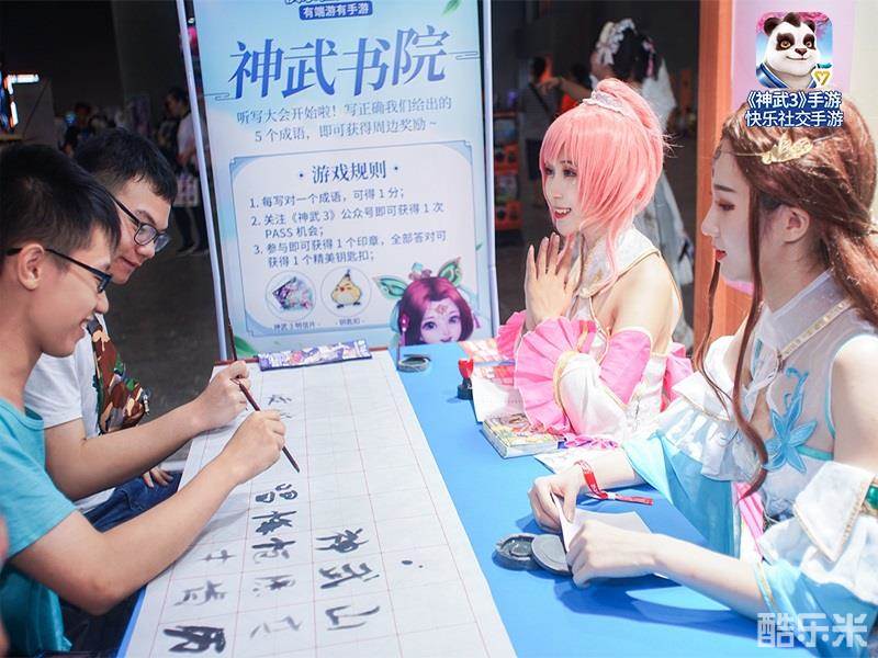 除古风建筑主题布景、神武同人墙等独具特色的经典元素外,《神武3》手游还为现场玩家带来了“英雄试炼”挑战试玩、“神武书院”汉字听写等趣味游戏互动,使得这场周边福利多多的线下狂欢更加回味无穷——与伙伴们并肩作战一起击败英雄试炼BOSS、解锁新成就的试玩挑战吸引了众多玩家亲临尝鲜,工作人员抽卡诵读、参赛选手正确书写的汉字听写互动更成为麽多漫展一道独特的风景线,门庭若市的景象每日都在重复上演。