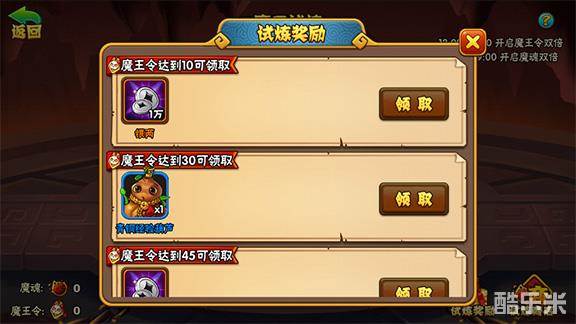 通过挑战魔王,可以获得"魔王令"。当魔王令累计到一定数量的时候就可以领取对应档位的奖励了。