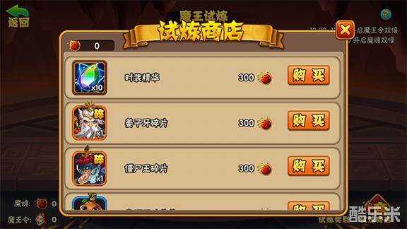 挑战魔王试炼会获得一样特殊的货币:魔魂,这样货币可以用来在【试炼商店】中购买特殊的货物。(时装精华就是在这里购买的,一般人我不告诉他)