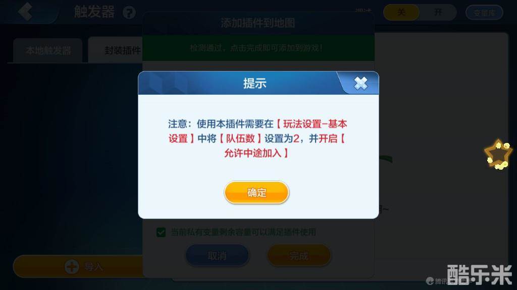 这个插件需要设置队伍数为2,并开始【允许中途加入】
